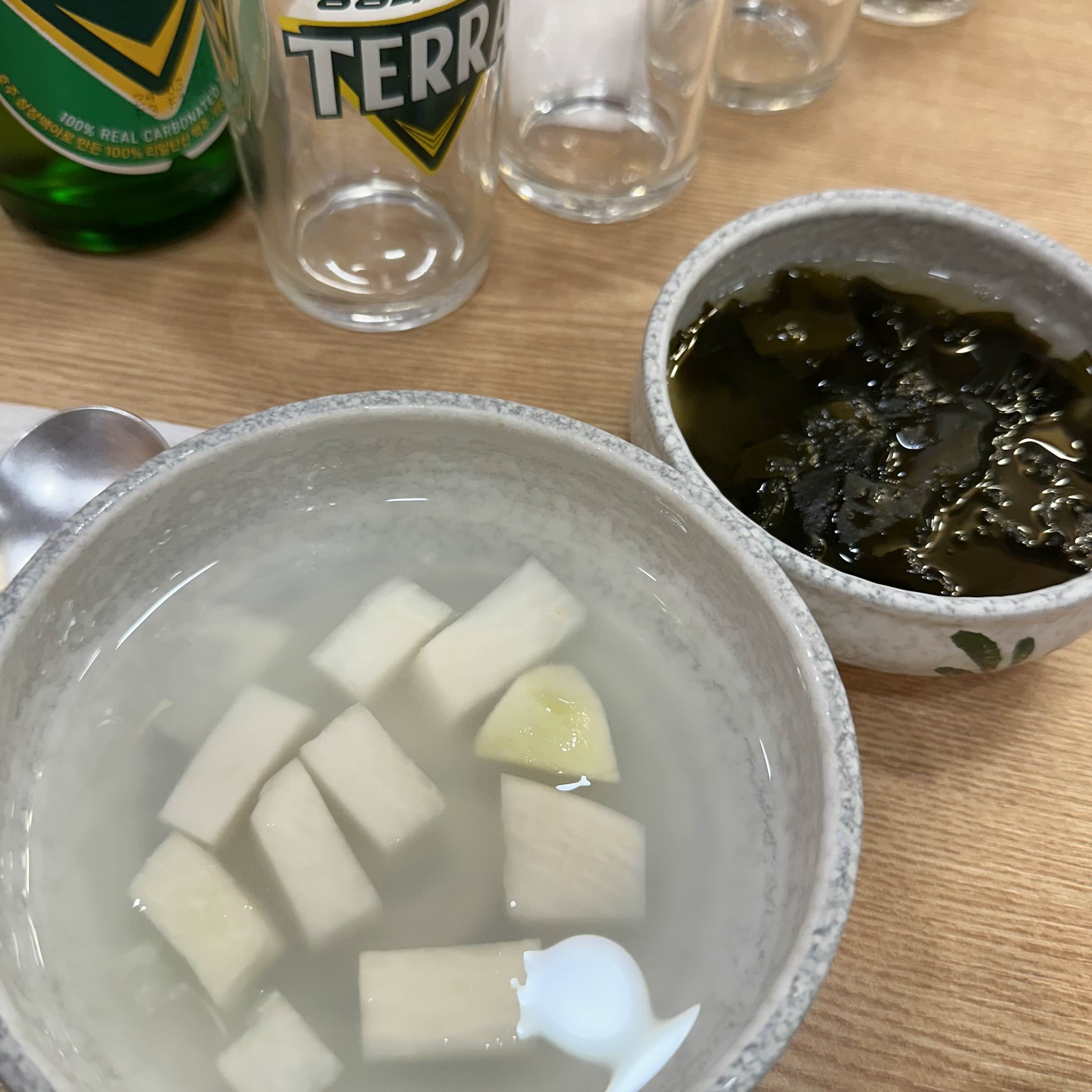 기본적으로 동치미와 미역국을 주십니다.