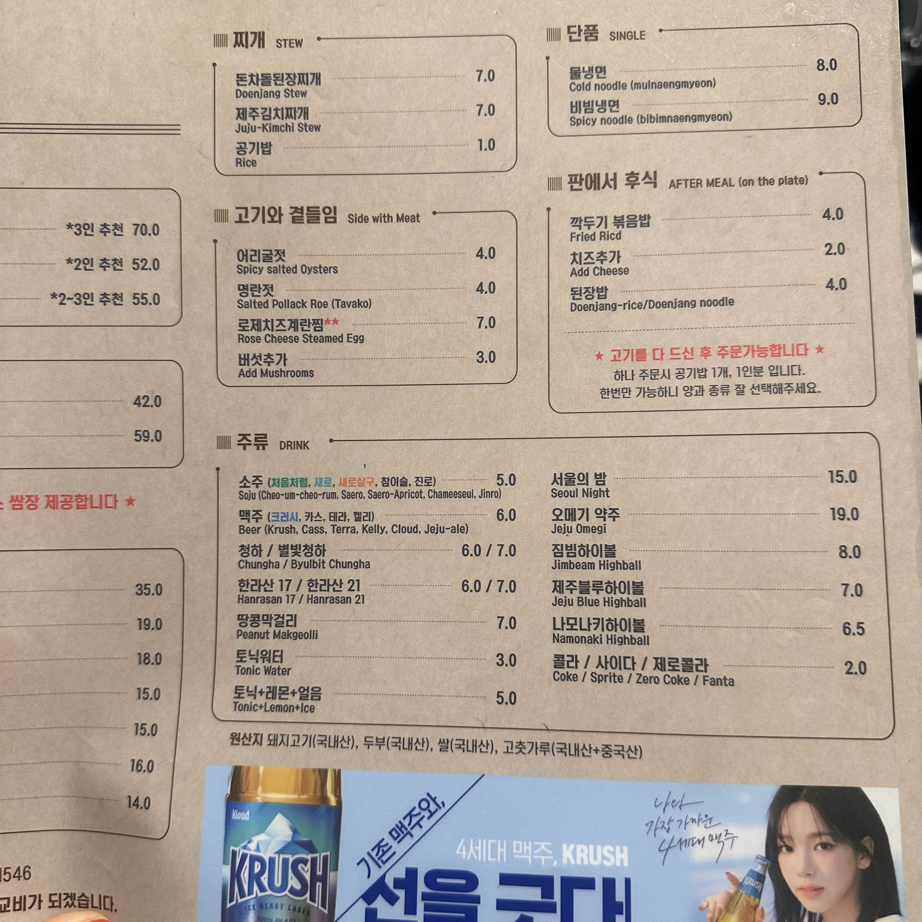 암퇘지 고기를 세트로 먹을 수 있답니다.